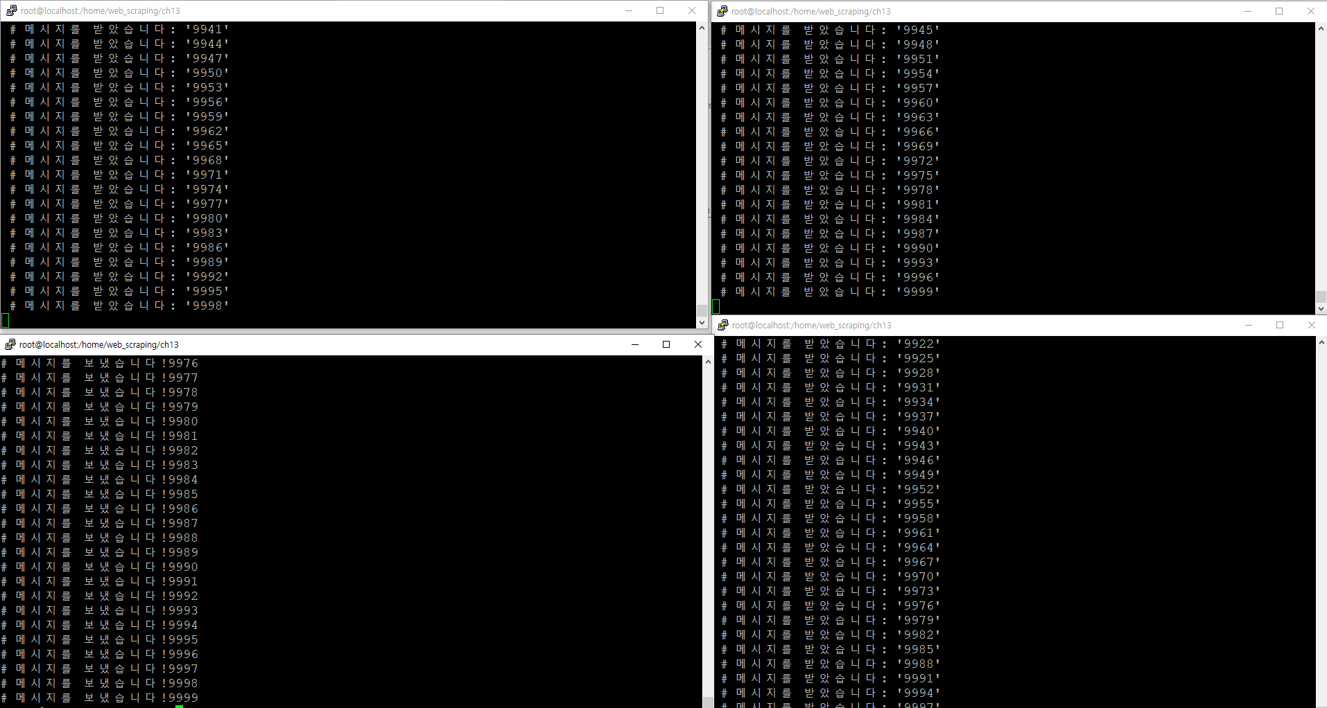 # 메시지 보내기를 시작합니다. 명시적으로 종료하기 전까지 계속 실행되면서