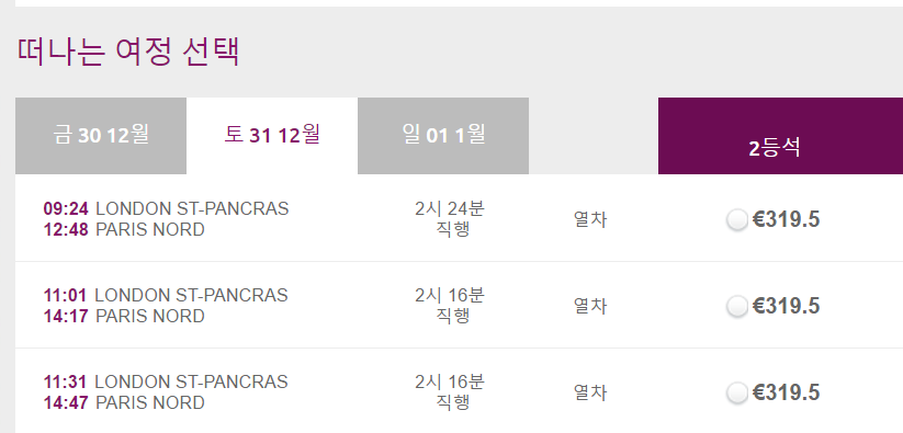4. 유로스타 예매 =>
